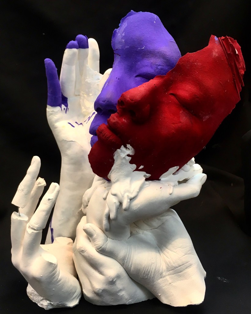Sculpture Dialogue, 2020 Love, plaster and resin, 2019 I, plaster and resin. 2019 Who am I?, plaster, each face 8”x6”, 2019 Me, multi media, 2018 Windows, plaster and concrete, 20″x6″, 2019 Waves, plastic, 2018 Share this: Share on X (Opens in new window) X Share on Facebook (Opens in new window) Facebook Like Loading...